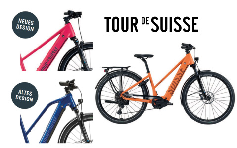 Wie bei allen Tour de Suisse Bikes kann gegen einen Aufpreis die Farbe des Rahmens und der Schrift ausgewählt werden.